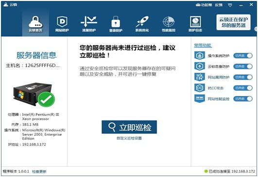 通常在站長服務器不安全因素導致網站出現掛暗鏈、掛廣告、掛盜鏈、掛馬是家常便飯,總在這上面花費我很多時間來處理服務器被hei問題,更不用說cc攻擊、ddos攻擊等等更是防不勝防,攤上這些安全問題,只能自認倒霉。如何省時省力的解決這些問題呢?如果公司有運維牛人或者使用的服務器租用或者服務器托管,恭喜你,你很幸運,如果沒有,最好的方法就是選擇一款實用的網站、服務器安全軟件。 這就是我今天要介紹的這款免費的服務器安全軟件:云鎖,我所以拿出來分享也不擔心說成是軟文,因為它目前是我的廣告主,我有必要關注關注廣告主的產品,如果是好產品我還是愿意分享的。另外它切切實實也是一款除“安全狗”之外唯一一款免費的服務器軟件了,屌絲站長沒有更多選擇。今天介紹它也是希望站長能多一個選擇: 1、界面功能版塊 ![]()