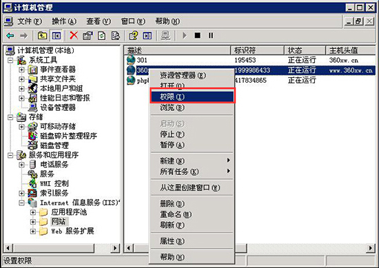 3、在出現未被授權查看該頁的網站域名點擊鼠標右鍵選擇權限,如下圖所示: