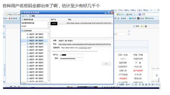 搜狗瀏覽器智能填表功能里保存大量網站密碼,涉及淘寶、微博等大量用戶: