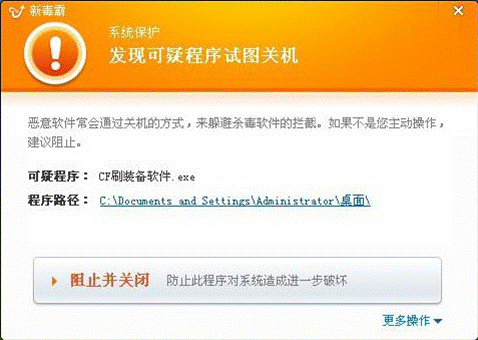 針對敲詐者病毒的新技術,金山毒霸升級了攔截方案,在病毒程序試圖篡改Windows用戶名和試圖重啟電腦時,分別予以攔截,可完全阻止敲詐者病毒的破壞。