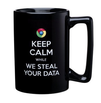 微軟發(fā)售的T恤上印有Chrome圖標,并附上“Keep calm while we steal your data”。