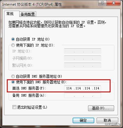 或者將DNS服務器地址修改為114.114.114.114。