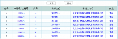 可以看到,阿里注冊了:雙十一、雙十一狂歡節、雙十一網購狂歡節、雙11狂歡節、雙11網購狂歡節,分別注冊的是第35類、第38類、第41類。