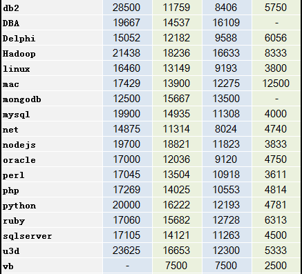 在應(yīng)屆生中,薪資水平最高的職位依次有:架構(gòu)師、mac、hadoop、技術(shù)經(jīng)理以及算法。最低的有vb、自動(dòng)化測(cè)試、廣告算法。