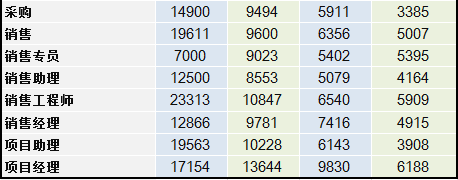 在職能類(lèi)職位整體數(shù)據(jù)中,最令人吃驚的還是前臺(tái)的工資……5年-10年工作經(jīng)驗(yàn),居然能拿到高達(dá)33000元的月薪!居然比行政總監(jiān)和HRD還高……難道做前臺(tái)5年后都升職變成老板娘了嗎(……這個(gè),經(jīng)過(guò)查證,是某些公司把前端職位當(dāng)成了前臺(tái)了-。-……)