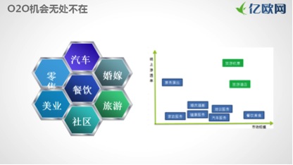 說了這么多,未來O2O還有哪些機會點?我們把線下傳統行業排個序就會發現,整體來說,機票加酒店的機會幾乎已經不存在了,因為它們的標準化低,線上滲透率本身也很高了。