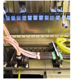 機柜內,這類布線方式是布線產品根據各種設備型號規格的不同設計各種安裝附件,這些附件可以方便的將這種與設備配套的布線產品安裝于該設備內,這樣EDA可以簡單地在設備內部集成。這種方式的優點是布線便利,擴容容易,維護方便。最大的缺點是由于設備型號眾多,根據設備的結構需要有許多相應的專用配線產品,受限于各廠家設備內部空間結構。典型的機柜內的安裝方式如圖4 所示: