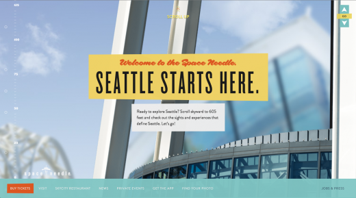 對于網站來說,擁有令人感到驚異的內容總是非常關鍵,而利用這些內容講故事更是一大優勢。2015年的網站設計很可能聚 焦于如何為用戶講故事。比如,Space Needle(美國西雅圖地標建筑太空針塔)的網站非常漂亮,可以通過使用講故事的方式介紹 Space Needle的有關事實,并以滾動翻頁的設計予以支持。Space Needle也證明2015年的另一種趨勢——互動。網站設計正添加更多 互動和動畫元素,以獨特和有吸引力的方式幫助介紹內容。在網站設計中加入互動與動畫,可以為你的網站帶來令人驚訝的因素。比 如,Impossible Bureau網站的互動性就很強,可以對你的滾動和懸停做出回應。