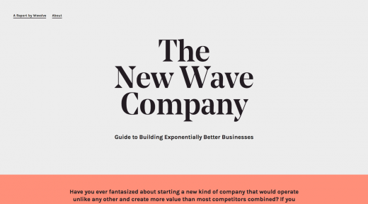 過去幾年中,網站設計中十分流行大標題背景圖像,上面經常有文字說明,這也是大多數訪客瀏覽網站時首先看到的東西。而在大標題背景圖像如此流行的情況下,你的網站如何能脫穎而出呢?采取相反措施。近來出現的一些網站逆勢而行,即沒有大標題背景圖像。我猜,他們這樣做不僅僅是不愿意追隨潮流,而且也在尋求提高網站的性能與速度。New Wave Company的網站就體現出這些特點。它使用大標題歡迎訪客,大字體集中在網頁中心,但標題后面沒有大背景圖片。這是一種高雅的做法,效果并不次于其他使用大背景圖像的流行網站設計。