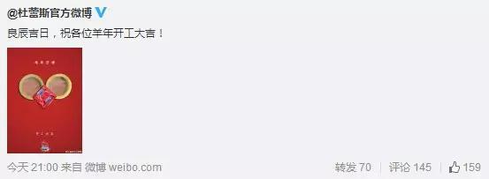 用杜杜做了一個羊頭的造型,開工大吉,簡單直接,惡搞元素是杜杜一貫作風,文案上沒能發揮極致,此條略顯平淡。