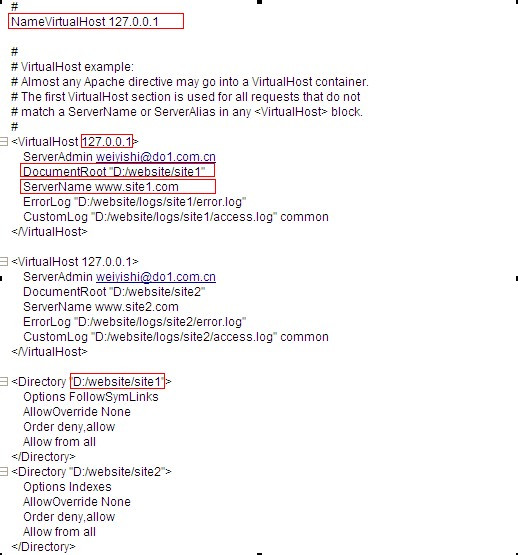 下面的配置是在window下的基于域名的網站空間配置,Apache版本為httpd-2.2.22,在本機上設置兩個網站空間,假設站點域名分別為www.site1.com和www.site2.com為例。