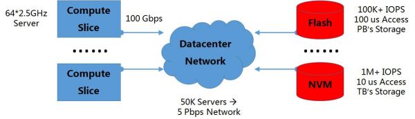 眾所周知,計算、存儲、網絡是構成數據中心的三大要素。而在此前的技術進展中,計算和存儲已經遭遇瓶頸,主要體現在:計算方面,隨著半導體技術面臨的物理障礙不可逾越,摩爾定律失效的時限日益臨近,因此單個計算節點的性能提升有限,從而必須依賴于分布式計算技術,而分布式集群中節點間的網絡將成為影響集群工作效率的關鍵;存儲方面,支持管理機制和存儲空間分離的分布式存儲技術已經解決了存儲容量的問題,但是存儲I/O仍是瓶頸(高性能的Flash當前仍舊停留在緩存的范疇),因此存儲性能的改進也非常依賴于網絡能力的增強。因此,網絡已經成為了提升大規模數據中心運行性能的關鍵點,是維持數據中心資源效率平衡的關鍵。