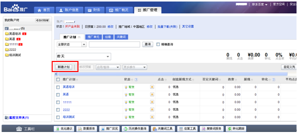 登陸推廣系統(tǒng),點(diǎn)擊搜索推廣“進(jìn)入”,選擇“推廣管理”,就可以開(kāi)始新建計(jì)劃了。