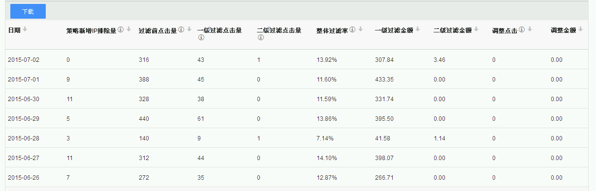 上圖為一賬戶中的7天的百度過濾點(diǎn)擊數(shù)據(jù)報(bào)告,我們可以看到,如果自己沒有進(jìn)行【百度商盾】中的IP策略屏蔽,我們就會(huì)浪費(fèi)很多的費(fèi)用,而這些費(fèi)用帶來的用戶都不是我們的目標(biāo)人群。