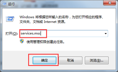 5、利用快捷鍵windows鍵+R鍵,在打開(kāi)的“運(yùn)行”對(duì)話框中,輸入“services.msc”,并點(diǎn)擊“確定”。
