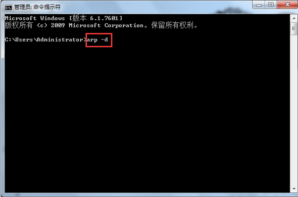 8、在dos命令下,運(yùn)行“arp -d”命令。