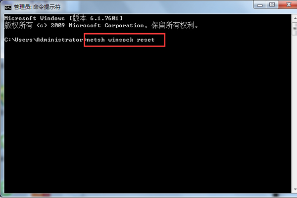 10、如果到這一步還未能解決dns服務(wù)器未響應(yīng)問(wèn)題,那就直接以管理員身份運(yùn)行dos命令,在dos命令行下運(yùn)行“netsh winsock reset”命令。