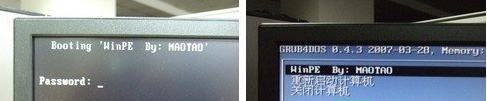 第二步、啟動電腦后,會要求輸入啟動U盤的密碼,也就是前文在制作這個啟動U盤時設置的密碼。當輸入正確的密碼后,即可看到一個選擇菜單,選擇“WinPE By:MAOTAO”。(如果沒設置U盤啟動密碼就不管)