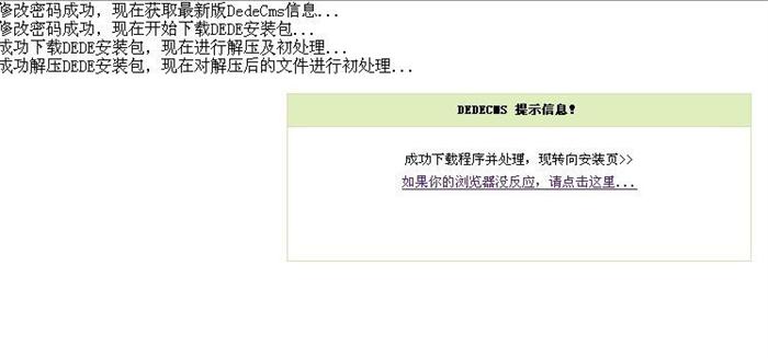 在輸入新的MySQL密碼框中輸入你需要設置的MySQL密碼點擊“修改密碼并下載最新版DedeCMS運行安裝”執行修改MySQL密碼下載最新的DedeCMS安裝程序。等待程序下載,會花幾分鐘的時間 如圖五: