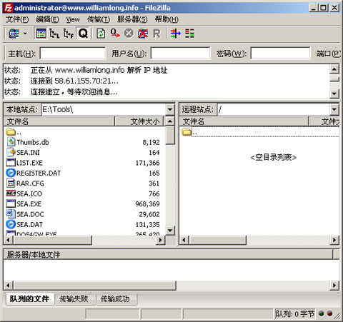 將客戶端的文件上傳到服務器上,最常用的軟件是FTP了,微軟的IIS自帶了一個簡單的FTP服務器管理軟件,如果覺得不好用,服務器上也可以安裝免費的FileZilla服務器管理軟件,客戶端可以使用免費的FileZilla Client,支持多線程上傳文件。
