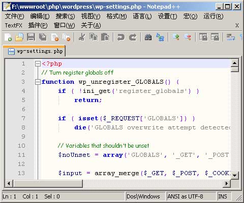 Notepad++是一個免費開源的源程序代碼、HTML網頁代碼編輯工具,支持多達數十種常見源代碼或腳本的語法,包括C,C++,Java,C#,XML,HTML,PHP,Javascript,RC resource file,makefile,ASCII,doxygen,ini file,batch file,ASP ,VB/VBS,SQL,Objective-C,CSS,Pascal,Perl,Python,Lua等,功能非常強大。在服務器上安裝后可以直接修改網站上的源程序代碼。