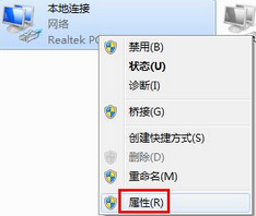 3、接著右鍵點(diǎn)擊“本地連接”,選擇“屬性”。如下圖:
