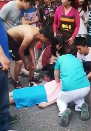 “當(dāng)時,有個女孩子躺在地上,呼吸特別微弱。她的閨蜜在一旁很著急的樣子,但也不知道該怎么辦。”徐鑫回憶,學(xué)過心肺復(fù)蘇的他把手機(jī)交給同伴,就展開了施救。他讓人群散開,保持空氣流通,又讓女孩的閨蜜掐其人中,請一位圍觀者伸手墊著女孩的頭部,自己則十指重疊按壓暈倒女子胸口。