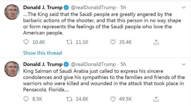 就美海軍基地槍擊案一事 特朗普推特發(fā)文表示慰問