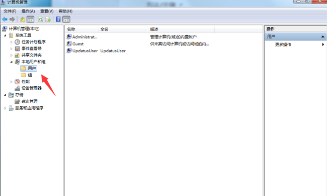 1、首先創建一個用戶賬戶用于登錄FTP進行操作,在本地電腦上右鍵點擊我的電腦(計算機)選擇管理選項,進入管理界面后打開本地用戶和組選項,然后就可以看到列表中的用戶選項。