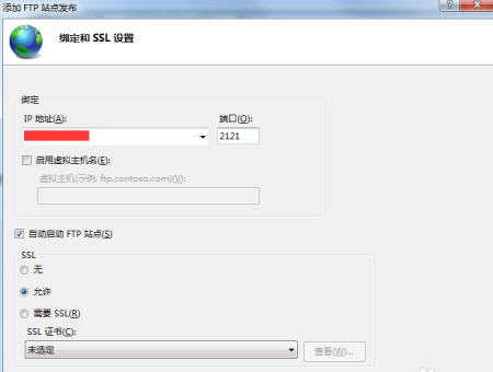 10、新建完成我們的FTP之后,可以看到網站的下方多出了一個我們剛剛建立的網站名,右鍵點擊網站名稱,選擇添加FTP站點發布,然后開始綁定和SSL設置,端口號選擇2121,IP地址填寫本機IP地址。