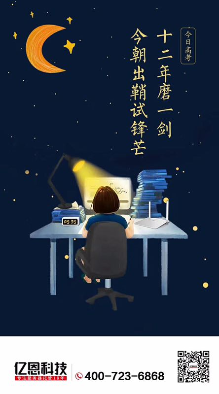 今天是6.7號,又到了一年一度的高考時間。高考是無數(shù)學(xué)子寒窗苦讀十二年奮斗的目標,是無數(shù)貧困學(xué)生改變命運的一搏,也是為自己這么多的年的努力交一份答卷。高考之后,你將告別自己的青蔥歲月,踏入人生的另一條道路,這條道路是坎坷還是平坦大道,決定權(quán)就在此一役。億恩科技的小編在此為大家助力,希望大家都考到好的成績,踏入自己理想的校園。
