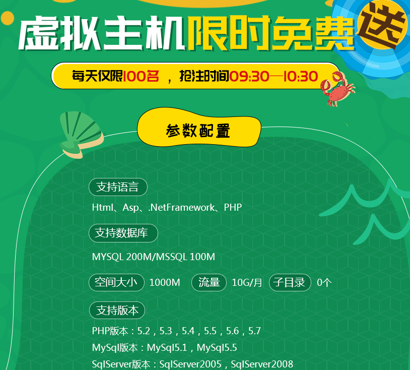 據悉,億恩科技將于本月27日開始,舉行為期一個月的夏日送涼活動,凡參加該活動的用戶都有得免費的虛擬主機機會,每天上午限時100名搶注活動,搶注時間:09:30-10:30。