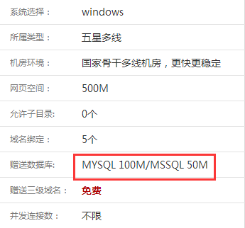 億恩虛擬主機(jī)支持?jǐn)?shù)據(jù)庫類型:MYSQL 、MSSQL