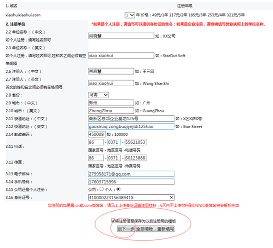 1.域名注冊所有人必須真實有效,和證件資料一致,如果不一致的話注冊成功后無法認證,域名就無法解析使用。
